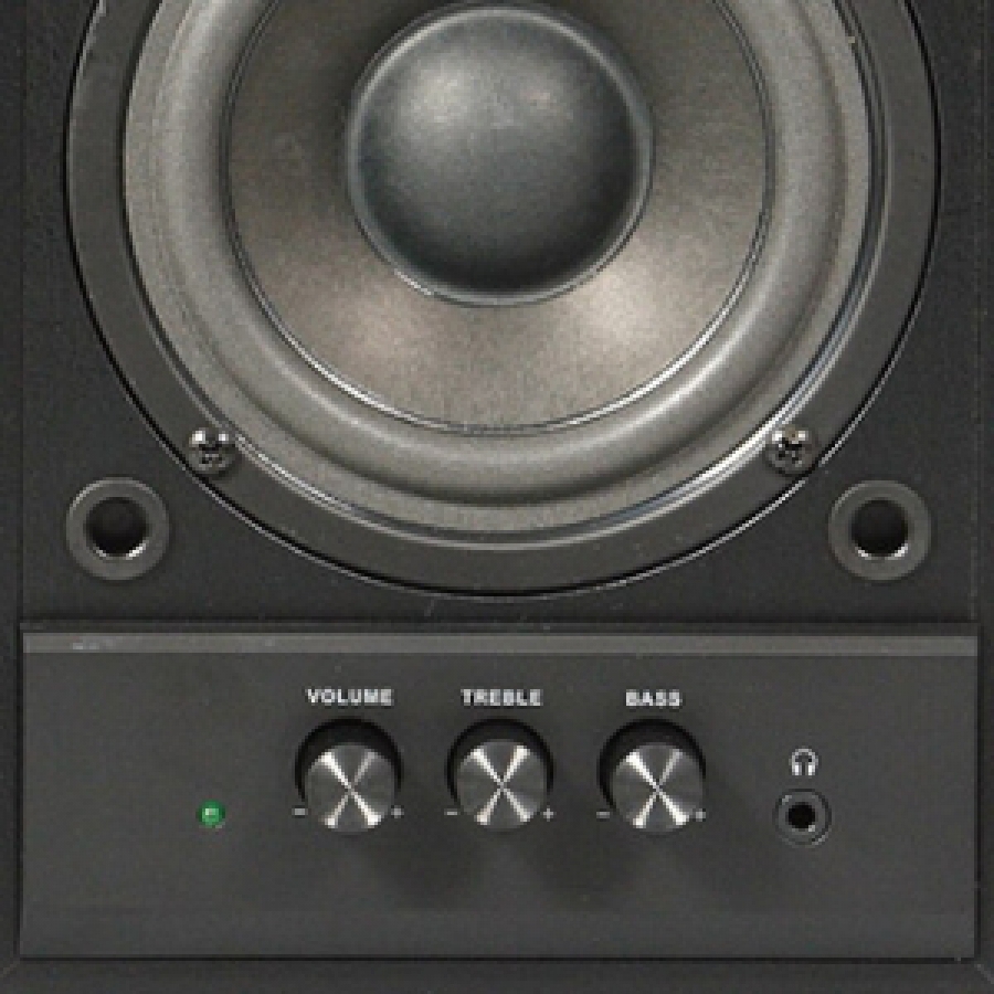 Volume and timbre control knobs are located on the front panel of the case, as well as the headphone output – so, all the settings are close at hand, ensuring absolute comfort in use. On the rear panel there are inputs for connecting various audio devices – PCs, DVD/CD/MP3 players.