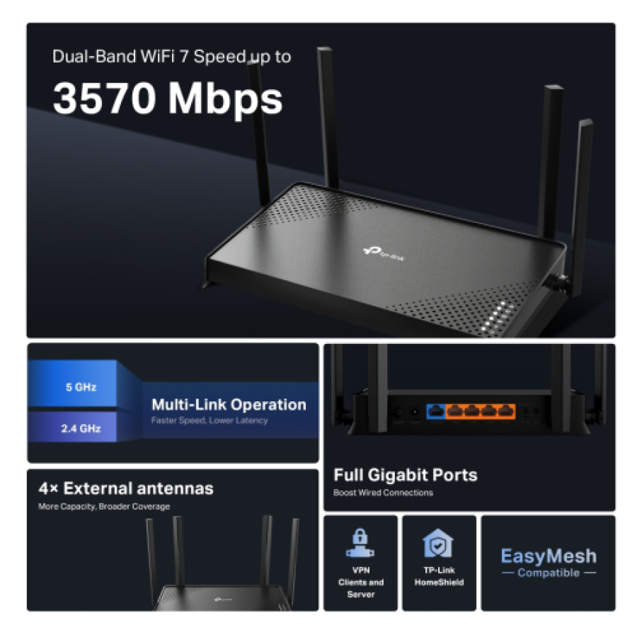 Rūteris TP-Link Archer BE220 BE3600 Dual-Band Wi-Fi 7